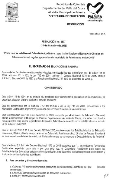 CALENDARIO ACADÉMICO 2019.